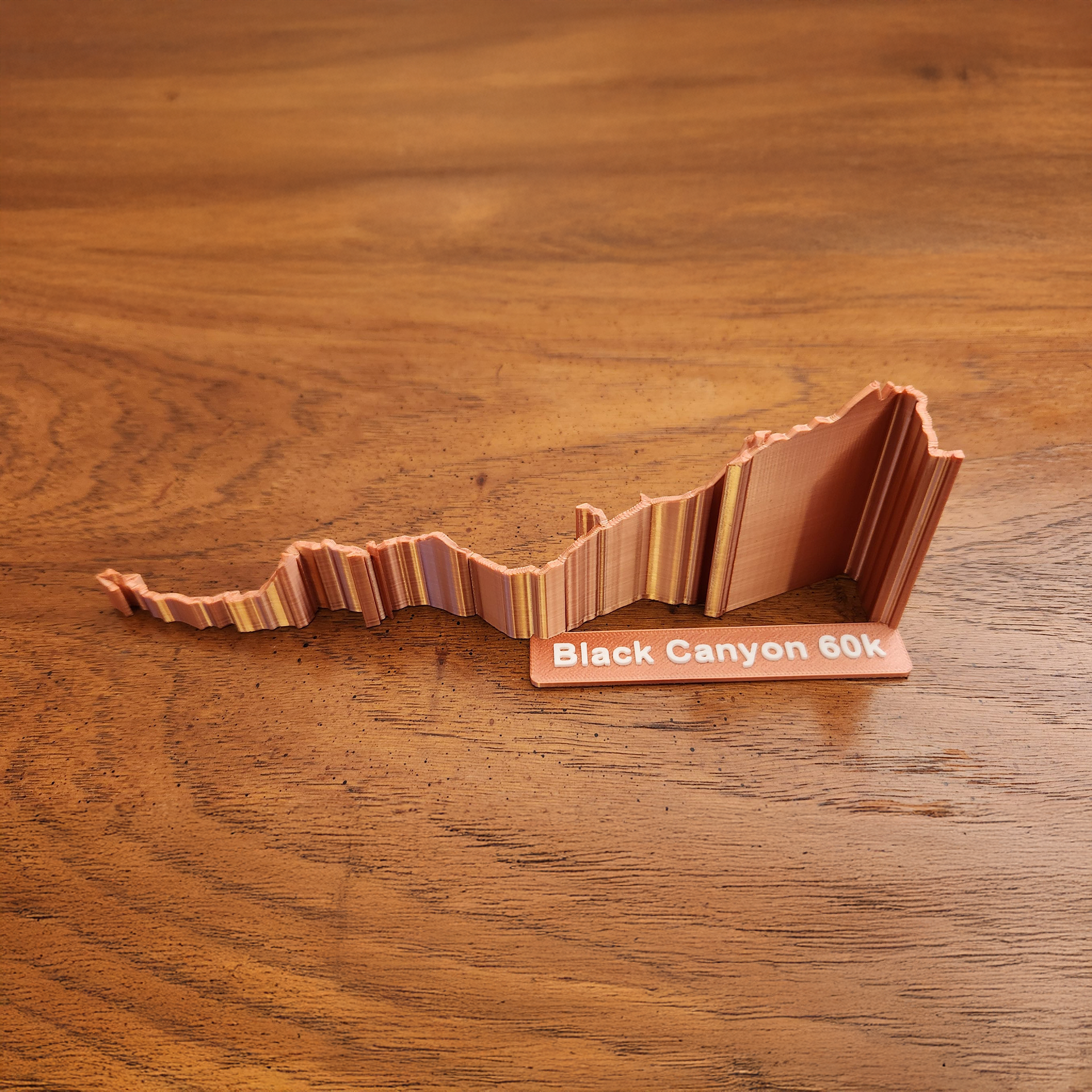 This Black Canyon 50K sculpture is made to order in Colorado using the route's actual GPS and elevation data.