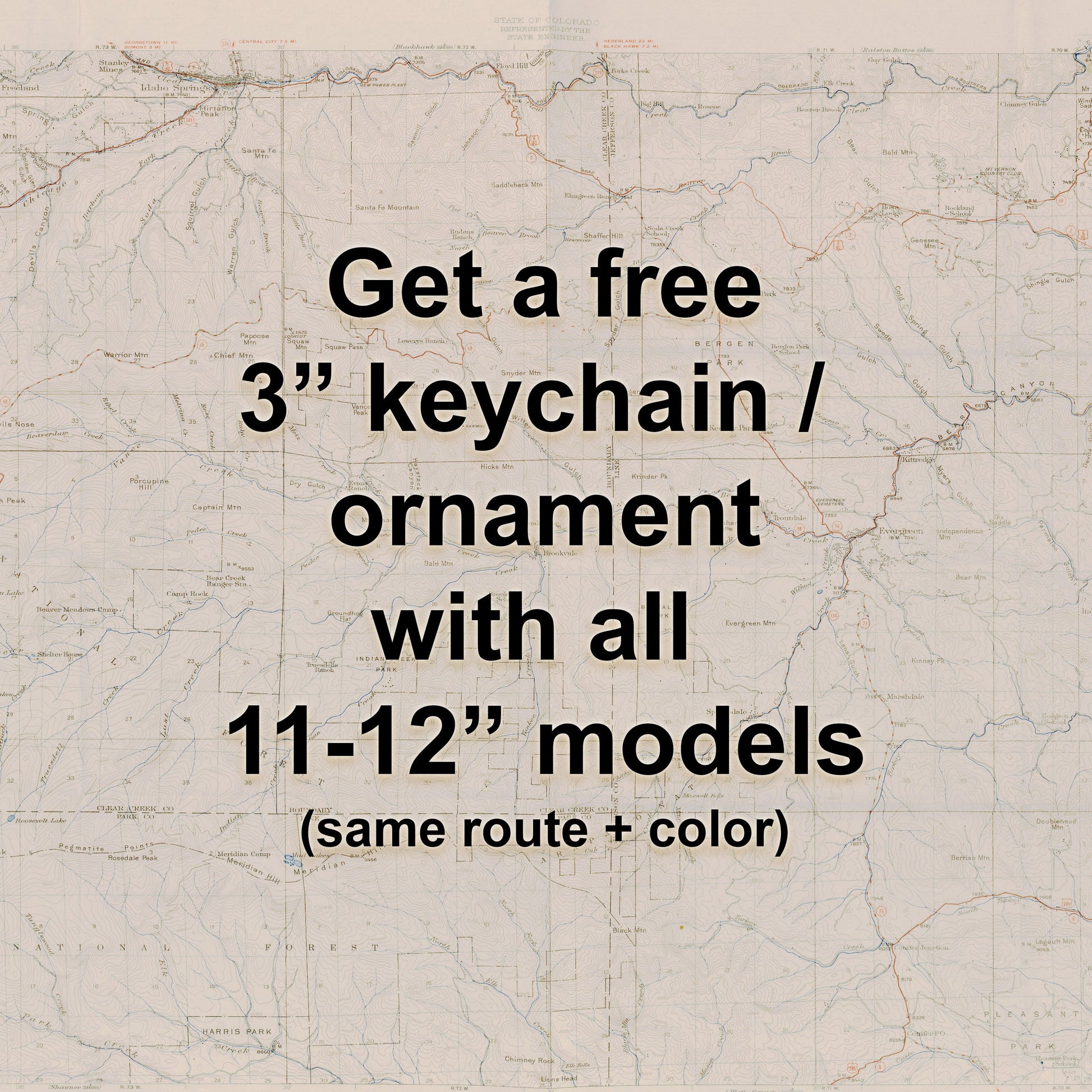 Each piece is custom designed using real GPS and elevation data, and is made to order in Colorado by a fellow outdoor enthusiast. And, a portion of all proceeds are donated to trail building organizations.