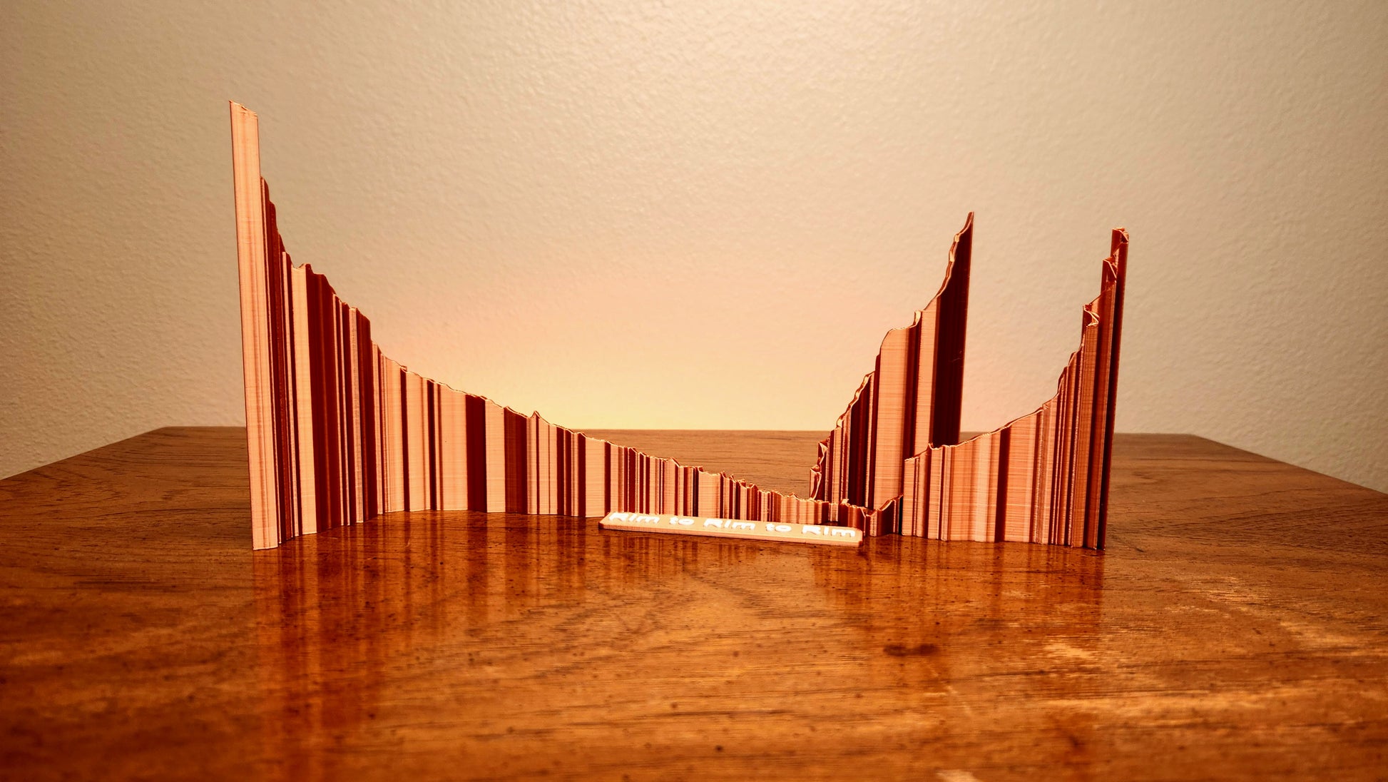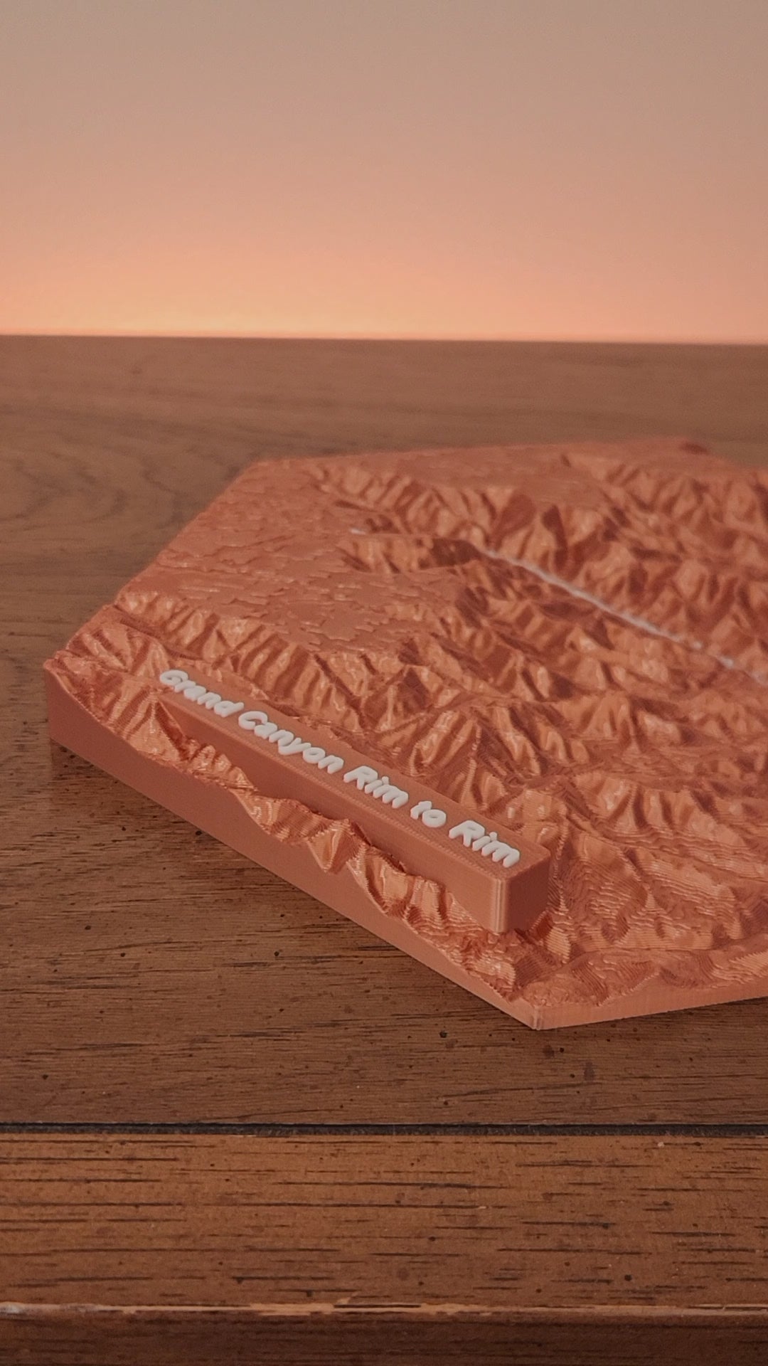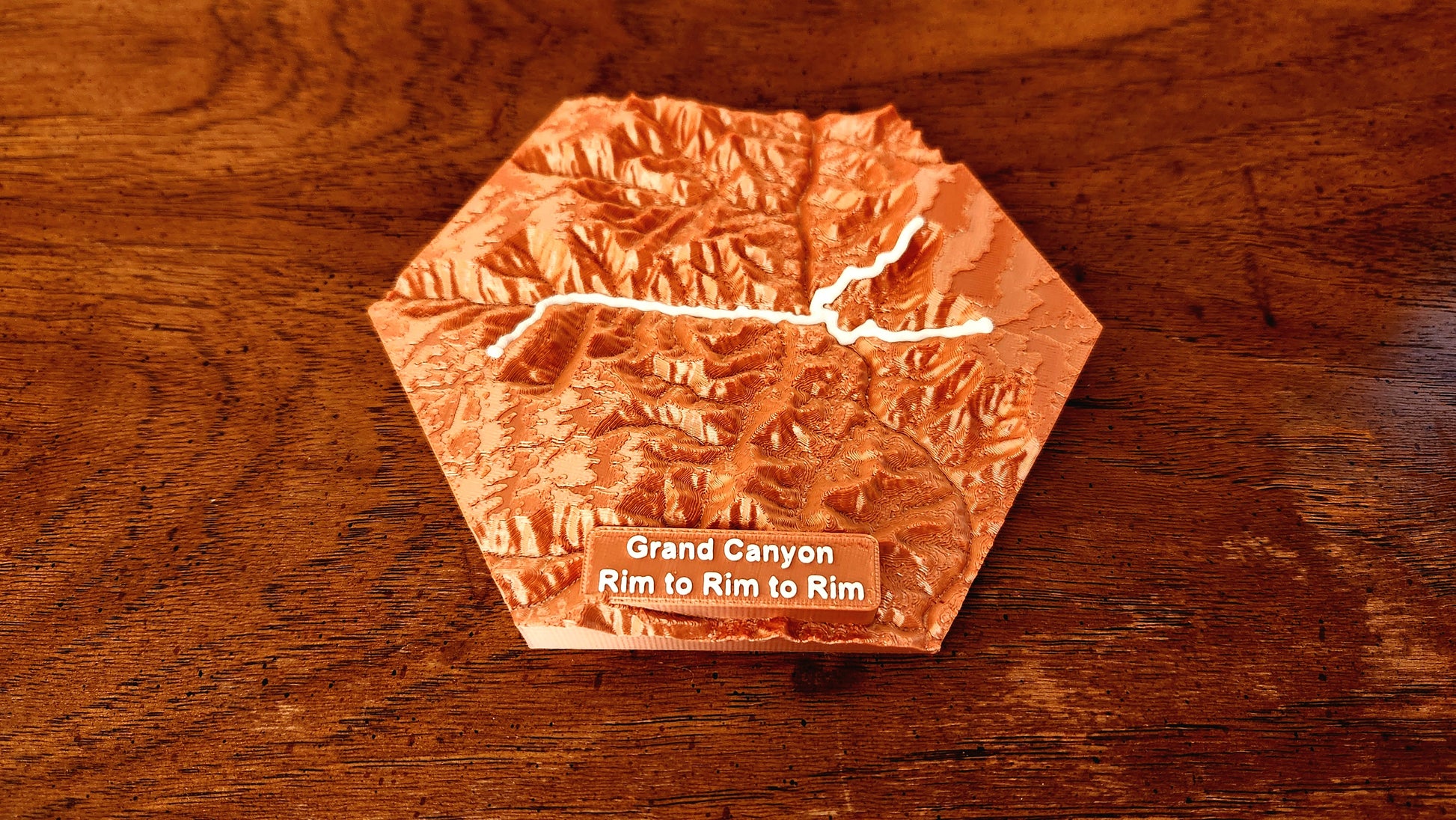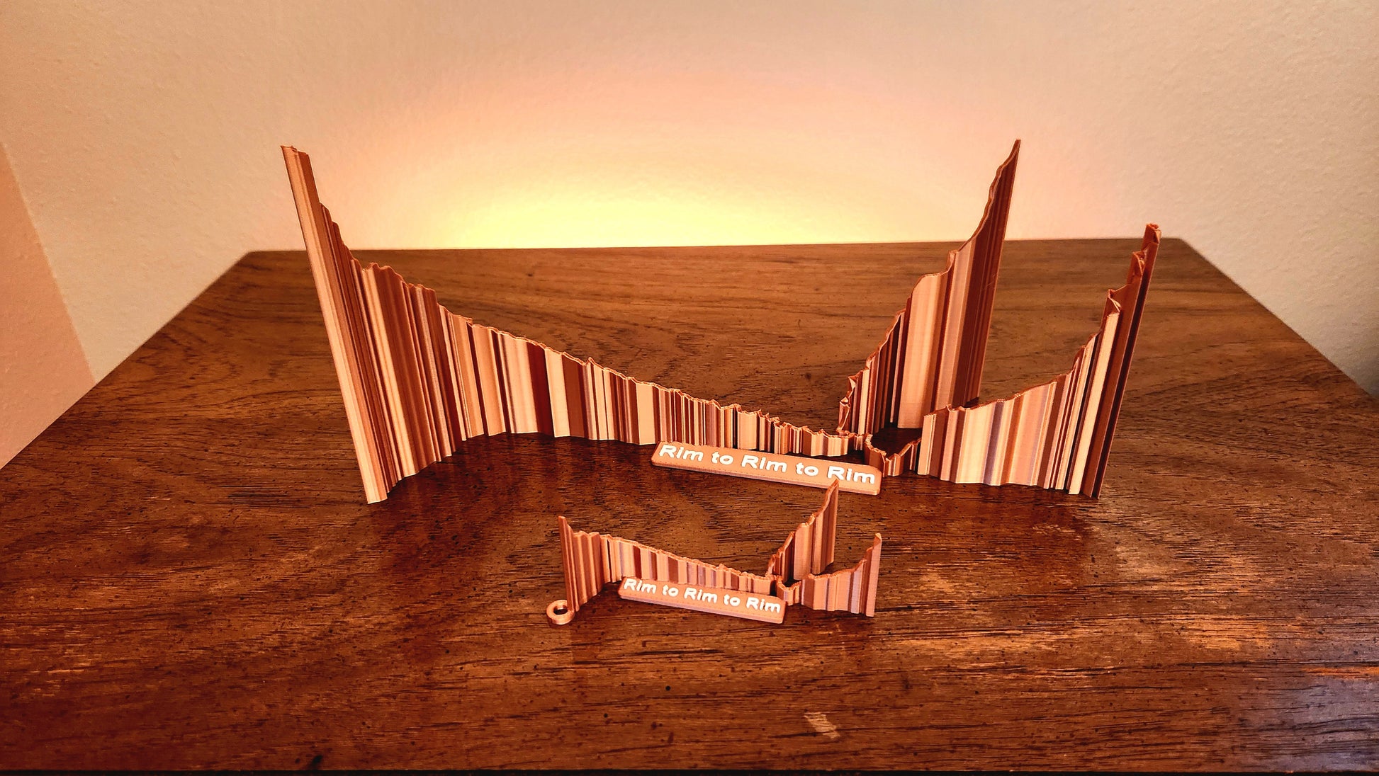 TopoCelebrate one of the most iconic endurance routes in the world with this custom made sculpture of the Grand Canyon Rim to Rim to Rim trail. This piece brings your achievement to life in elegant detail, following the real GPS track and elevation profile of the Rim to Rim to Rim route.